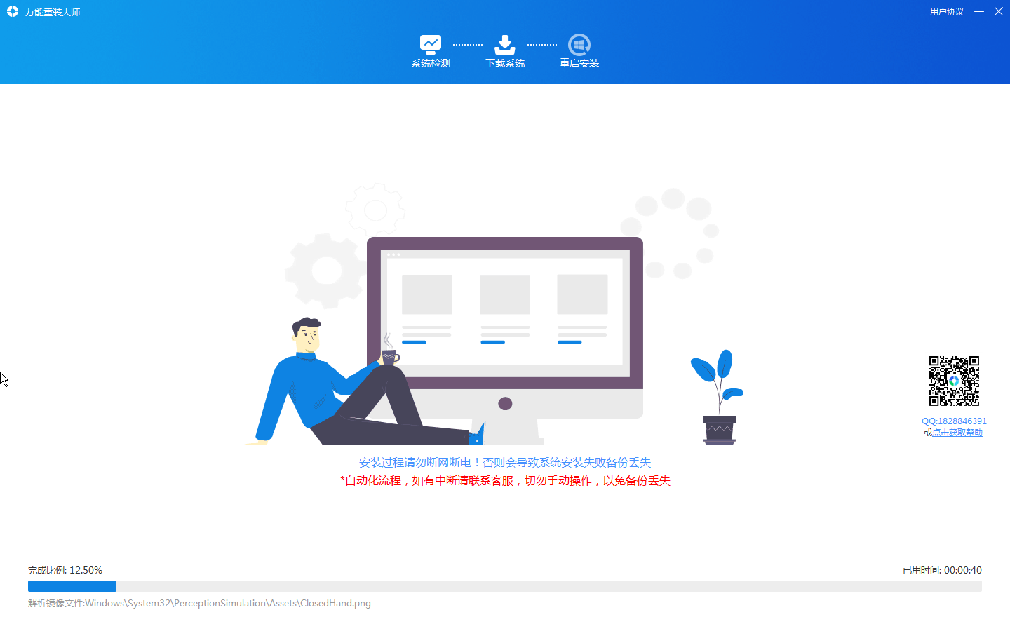 重启电脑,自动安装